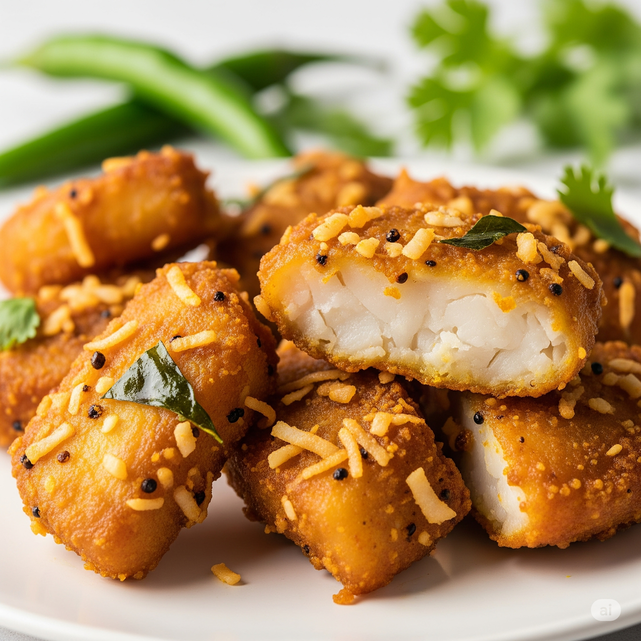 Crispy-coated fish nuggets tossed in a tangy peri-peri marinade. A fusion of coastal freshness and continental spice.