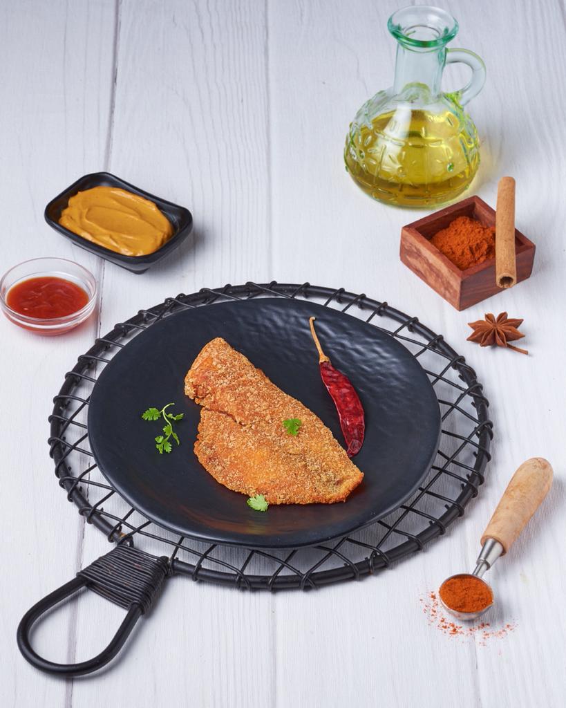 Traditional masala-marinated fish fillets, seasoned with robust Indian spices. A versatile option for pan-frying or grilling.