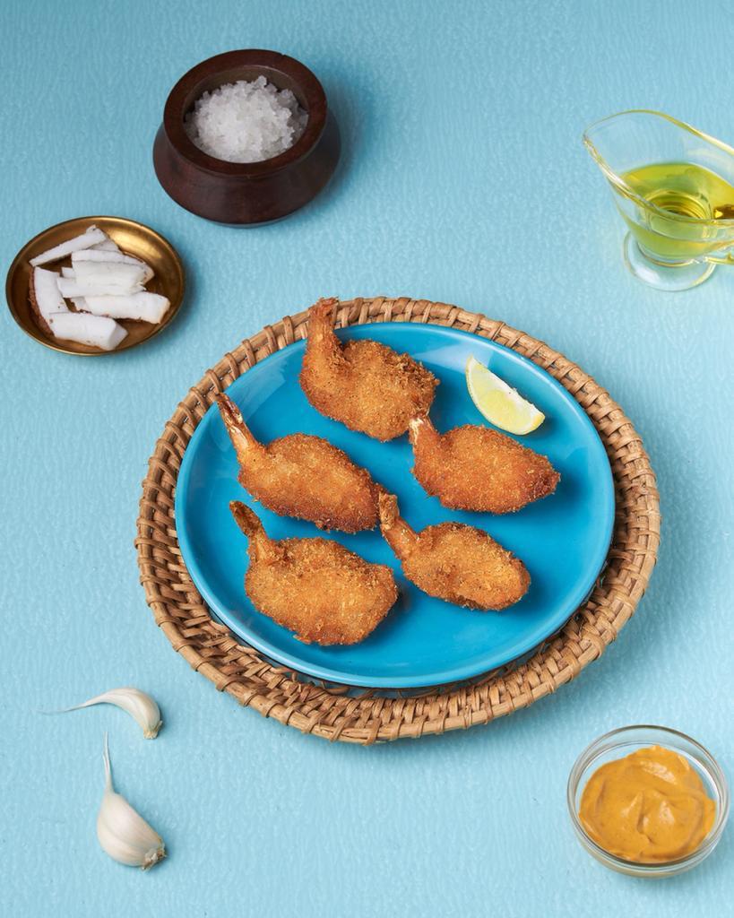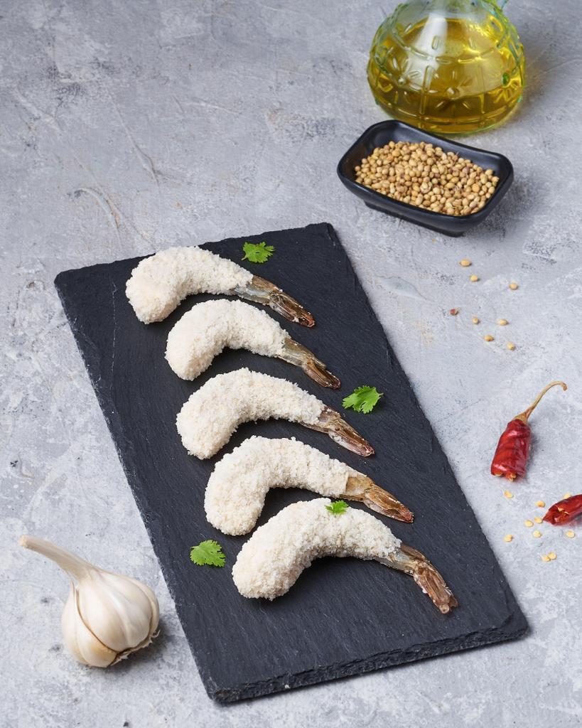 Whole prawns dipped in seasoned batter and coated for maximum crunch. Ideal for party platters or seafood cravings.